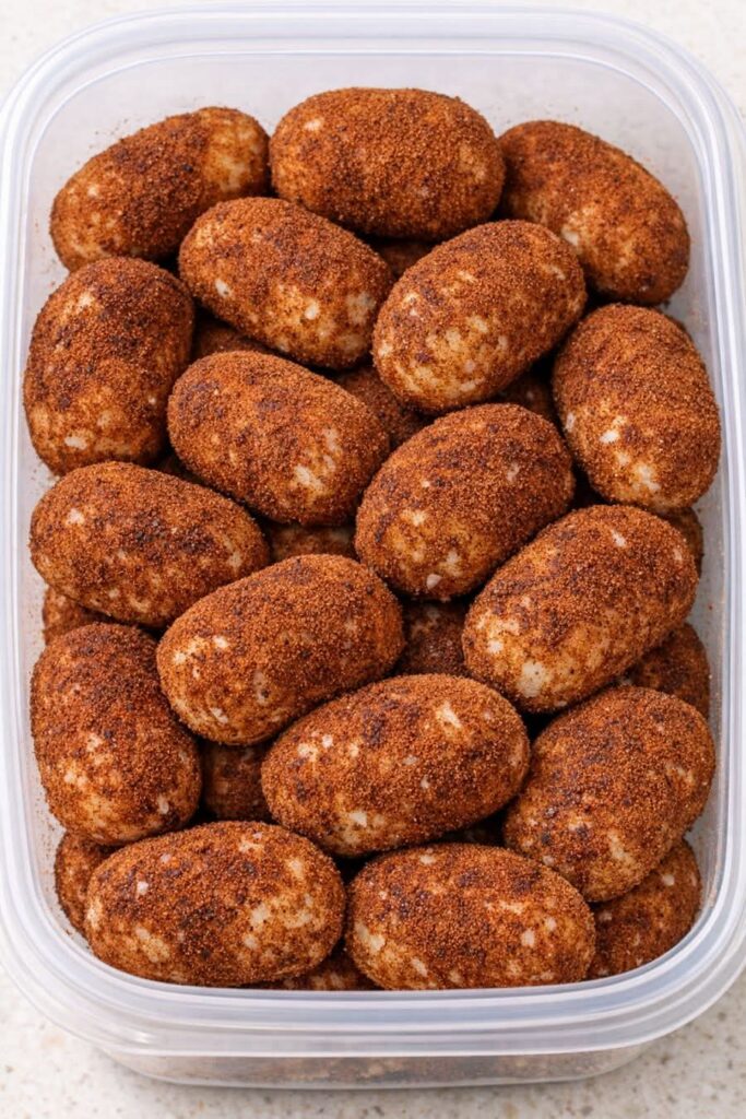 Scoop small portions (about 2 teaspoons) and roll into oval shapes resembling mini potatoes.