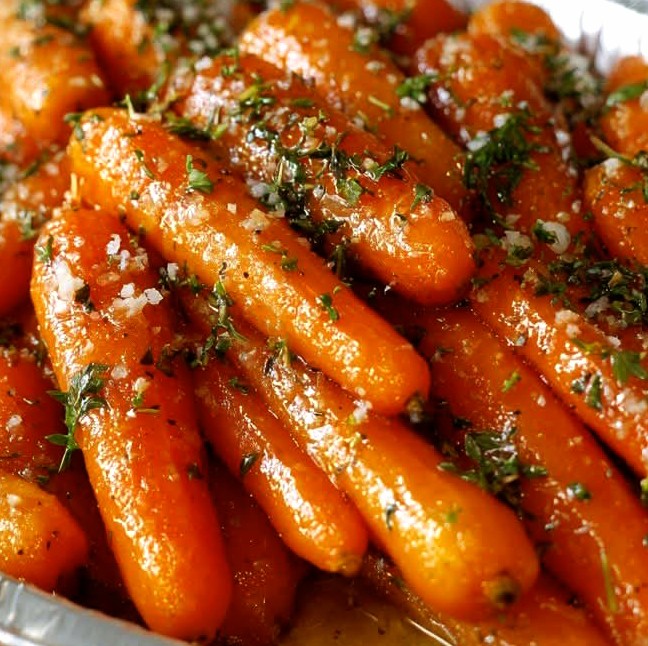 Sweet and buttery baked candied carrots made with brown sugar, cinnamon, and butter. An easy oven-baked side dish perfect for holidays or family dinners.