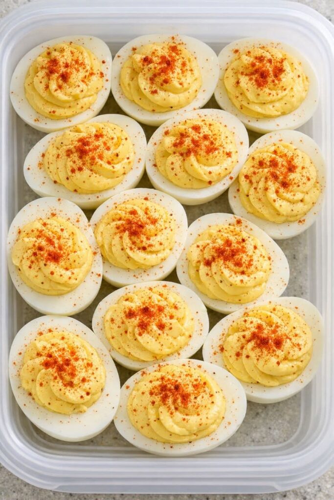 With a rich, smooth filling made from eggs, mayonnaise, and mustard, topped with a sprinkle of paprika, these homemade deviled eggs come together in minutes and disappear just as fast!