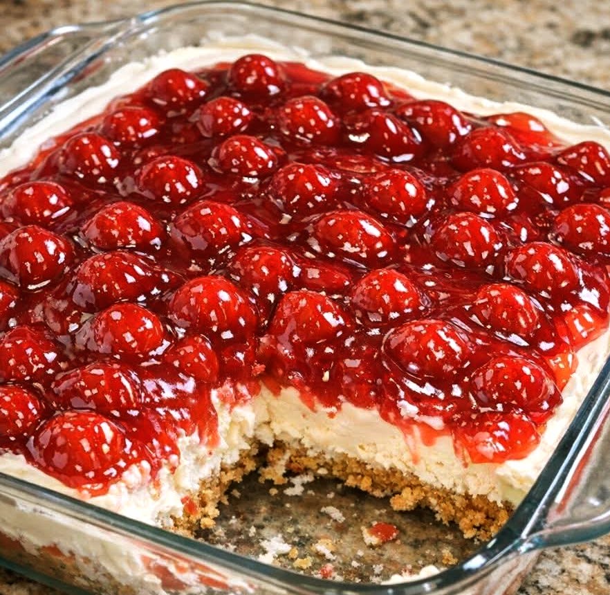 This classic Cherry Delight recipe is a true vintage potluck dessert that never goes out of style. Sweet, creamy, and wonderfully nostalgic, this no-bake cherry dessert has been a Midwestern favorite for decades showing up at church potlucks, family reunions, holidays, and summer cookouts. With its buttery graham cracker crust, fluffy cream cheese filling, and glossy cherry pie topping, it’s the kind of old-fashioned dessert that disappears fast.