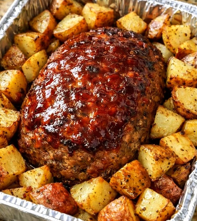 Finish baking for another 20–25 minutes, until the meatloaf reaches 160°F (71°C) internally and potatoes are fork-tender.