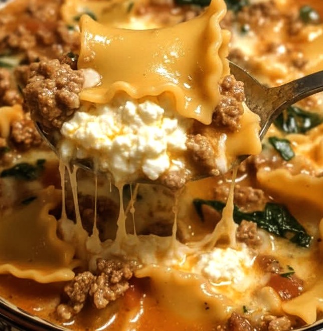 Creamy Alfredo Lasagna Soup with ground beef is a rich, cheesy one-pot comfort food recipe. Easy, hearty, and perfect for cozy family dinners.