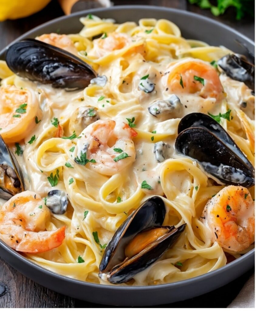 Rich, velvety pasta with shrimp, mussels, and a zesty lemon cream sauce