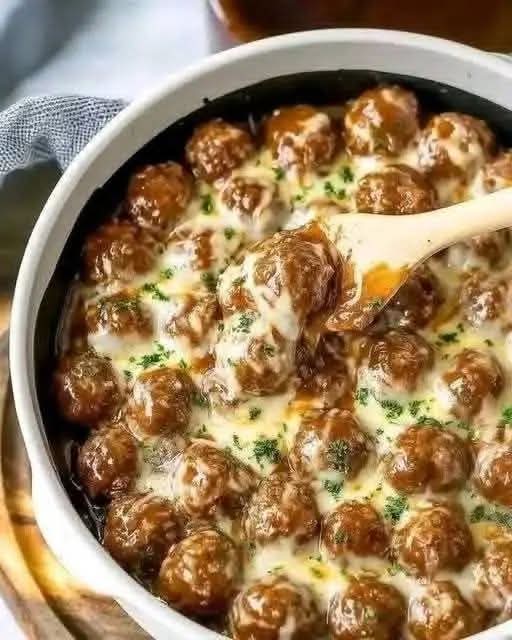 These Crockpot French Onion Meatballs are a comforting, slow cooker meatball recipe packed with rich French onion flavor and topped with gooey melted mozzarella cheese. Made with simple pantry ingredients, this easy crockpot dinner is perfect for busy weeknights, family meals, or game-day gatherings.