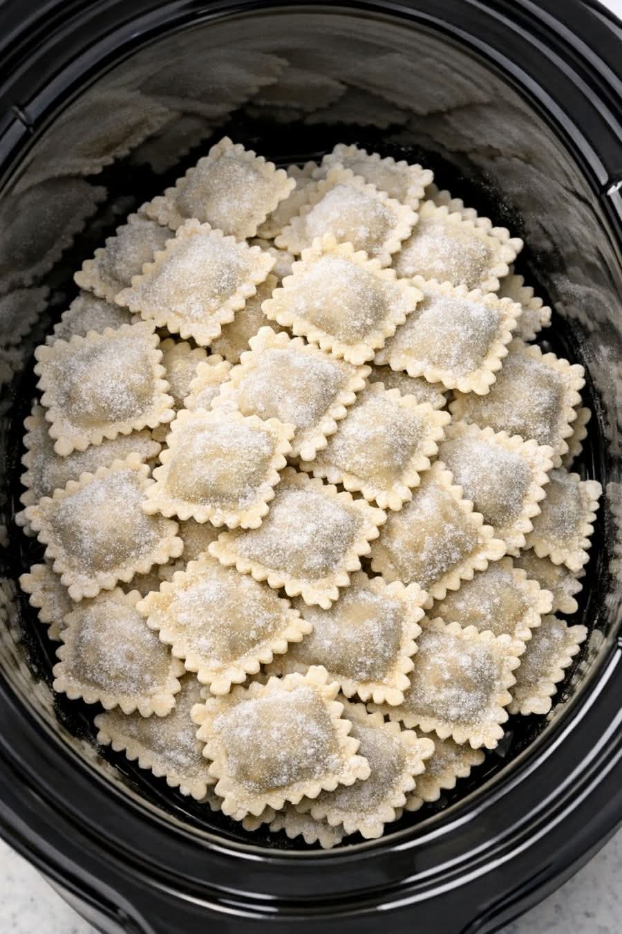 5. Cover and cook on LOW for 3–4 hours until the ravioli are tender.