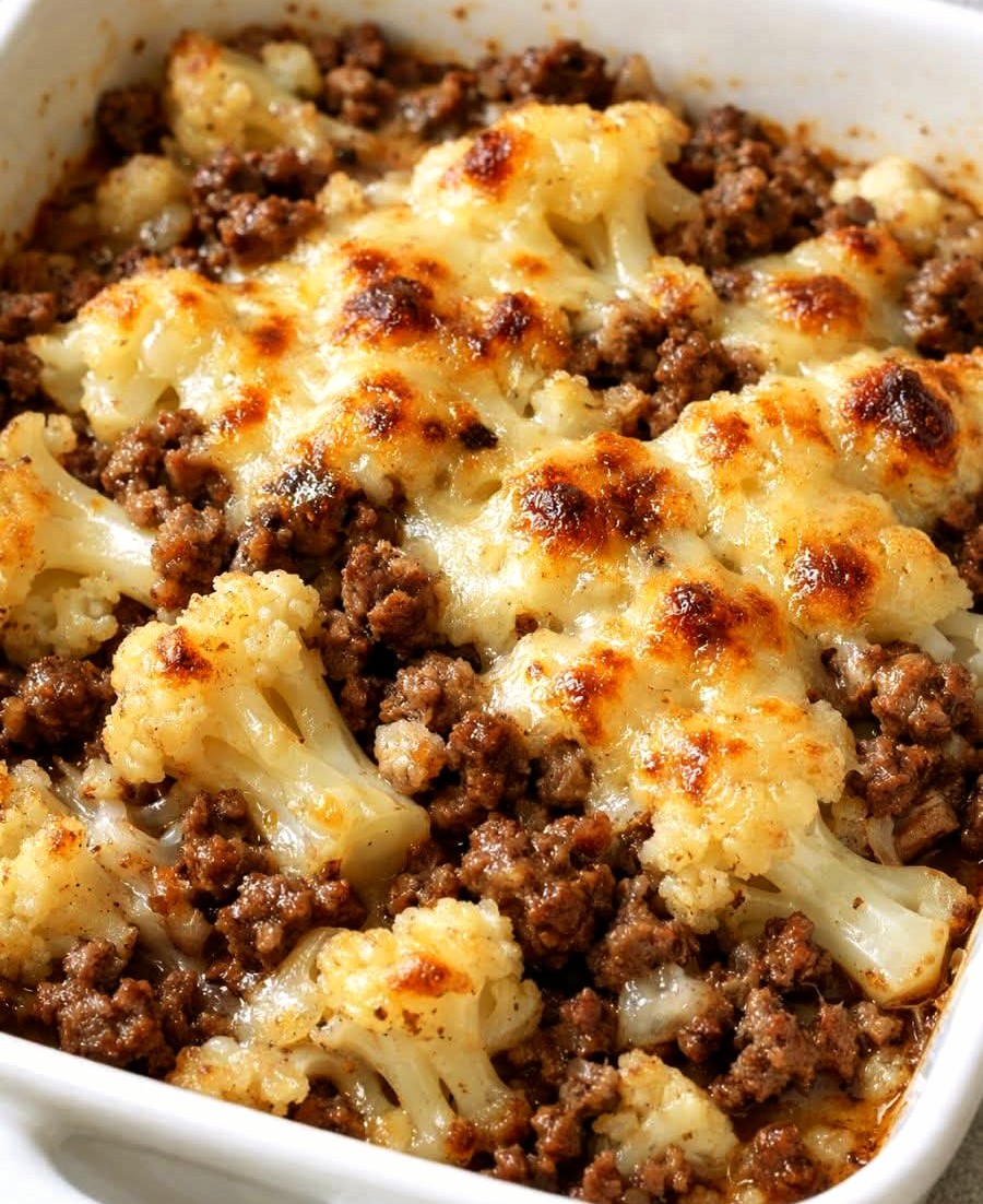 Perfect for busy weeknights, meal prep, or feeding a crowd, this hearty dish combines juicy ground beef, tender cauliflower, creamy soup, and melted cheddar cheese into a delicious low carb casserole your whole family will love.