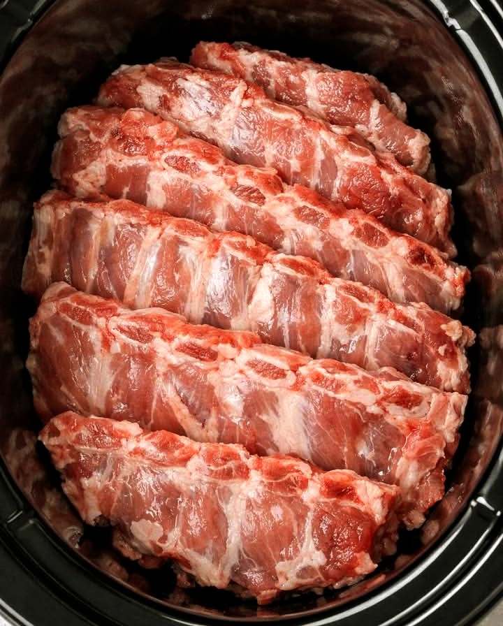 Place the ribs in a single layer at the bottom of your slow cooker.