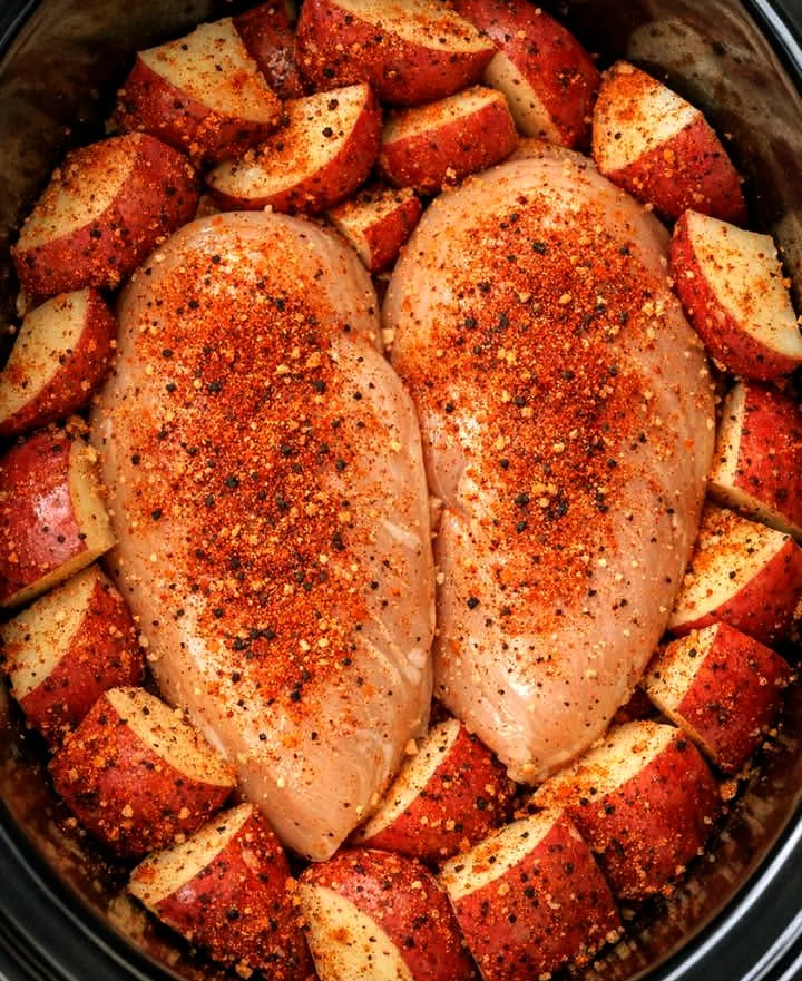 This slow cooker Cajun chicken and potatoes recipe is a simple, flavorful, and budget-friendly dinner perfect for busy families. Made with just four ingredients, this easy crockpot chicken recipe delivers tender, juicy chicken breasts and perfectly seasoned red potatoes infused with bold Cajun spices.