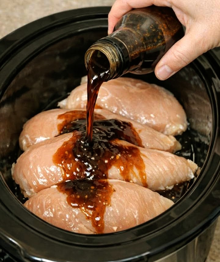 - Slice or shred the chicken, then return it to the slow cooker and toss in the sauce.