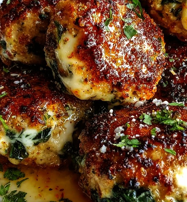 These Golden Italian Meatballs with Molten Mozzarella Centers are tender, protein-rich, and bursting with classic Italian flavors. Made with fresh spinach, garlic, Parmesan, and Italian herbs, each bite reveals a gooey mozzarella surprise that makes this dish irresistible. Perfect for family dinners, meal prep, or entertaining guests.