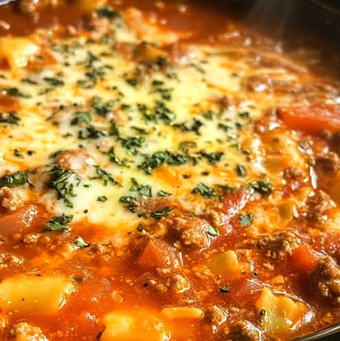 Warm up with this Hearty Lasagna Soup Delight! A cheesy, protein-packed one-pot soup with tender noodles, rich tomato sauce, and savory ground beef or Italian sausage perfect for quick, comforting weeknight dinners.