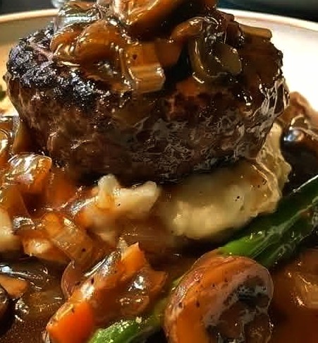 A comforting classic! This Old Fashioned Salisbury Steak is juicy, flavorful, and smothered in rich mushroom onion gravy. Perfect for family dinners, weeknight meals, or meal prep.