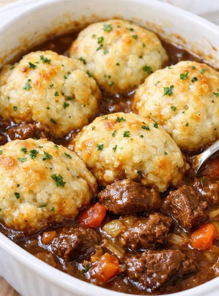 This easy Amish beef and dumpling casserole is the ultimate comfort food dinner made with just 4 simple ingredients. Slow-baked in the oven, the beef becomes incredibly tender and juicy, while a rich, savory gravy forms a creamy base for soft, golden dumplings on top. Perfect for busy weeknights, family dinners, or potlucks, this recipe delivers big flavor with minimal effort.