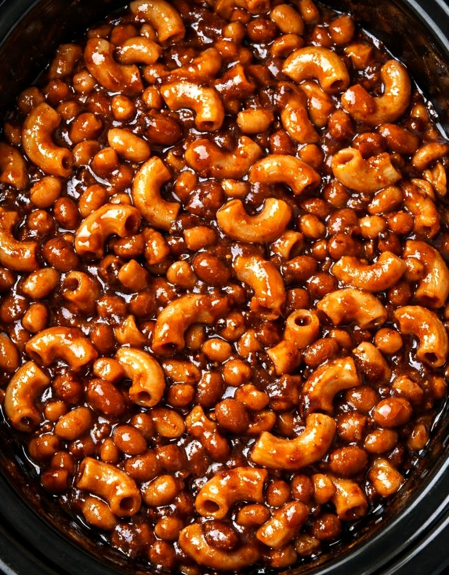 Slow Cooker 3-Ingredient Baked Bean Macaroni