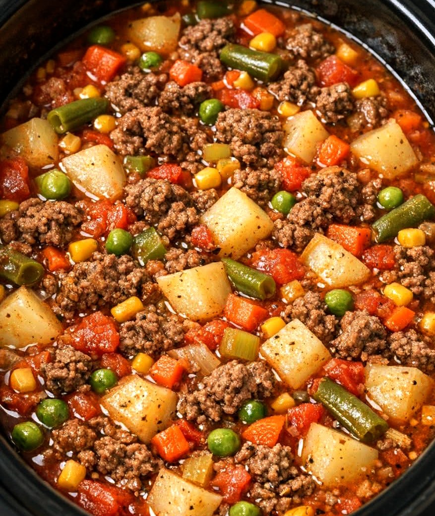 Slow Cooker 4-Ingredient Hamburger Vegetable Soup