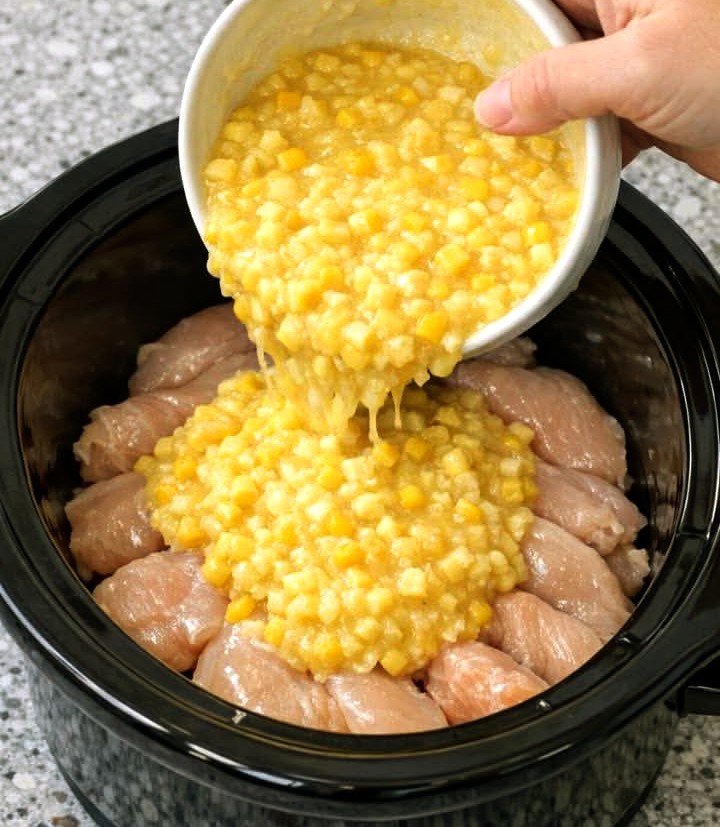 Slow Cooker Amish Creamed Corn Chicken Pasta