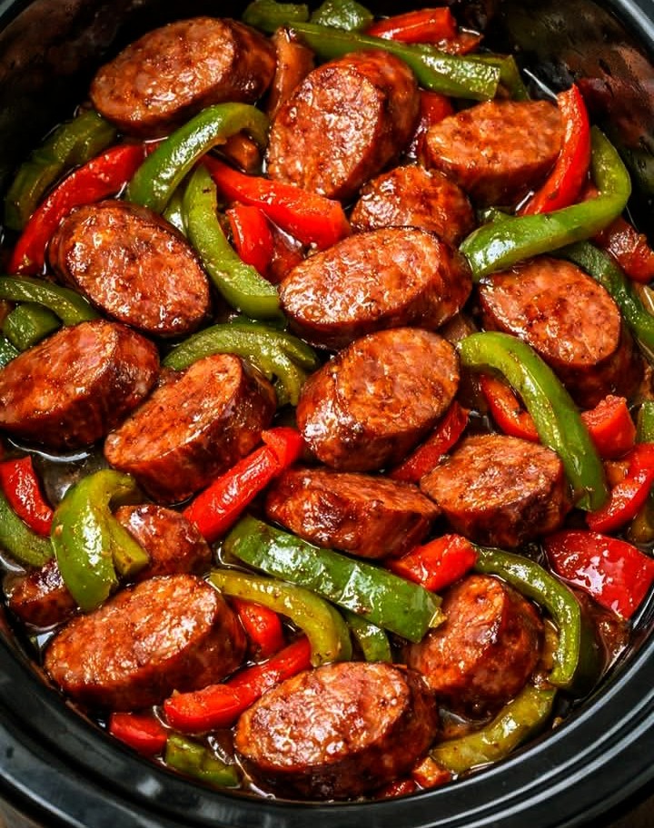 Made with simple pantry staples like smoked sausage, fresh bell peppers, and a sweet-and-tangy sauce, this dish slowly simmers into a rich, glossy, flavor-packed meal that tastes like it took hours to prepare because your slow cooker does all the work.