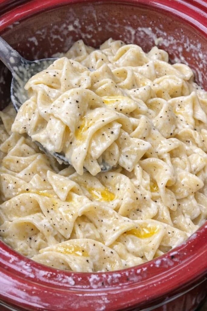 This slow cooker Amish sour cream noodles recipe is pure comfort in a bowl. It’s: