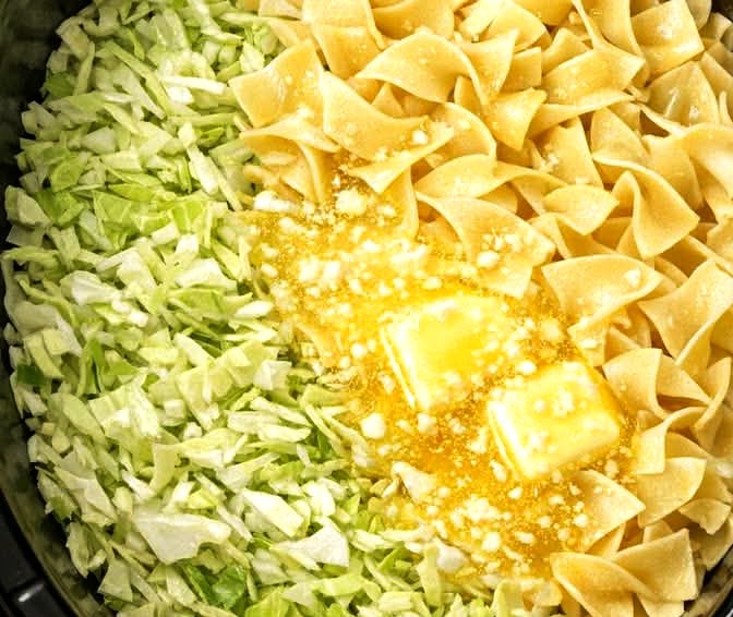 Stir noodles into the cabbage mixture. Add remaining salt and extra butter if desired. Cover and cook on LOW for 15–20 minutes.