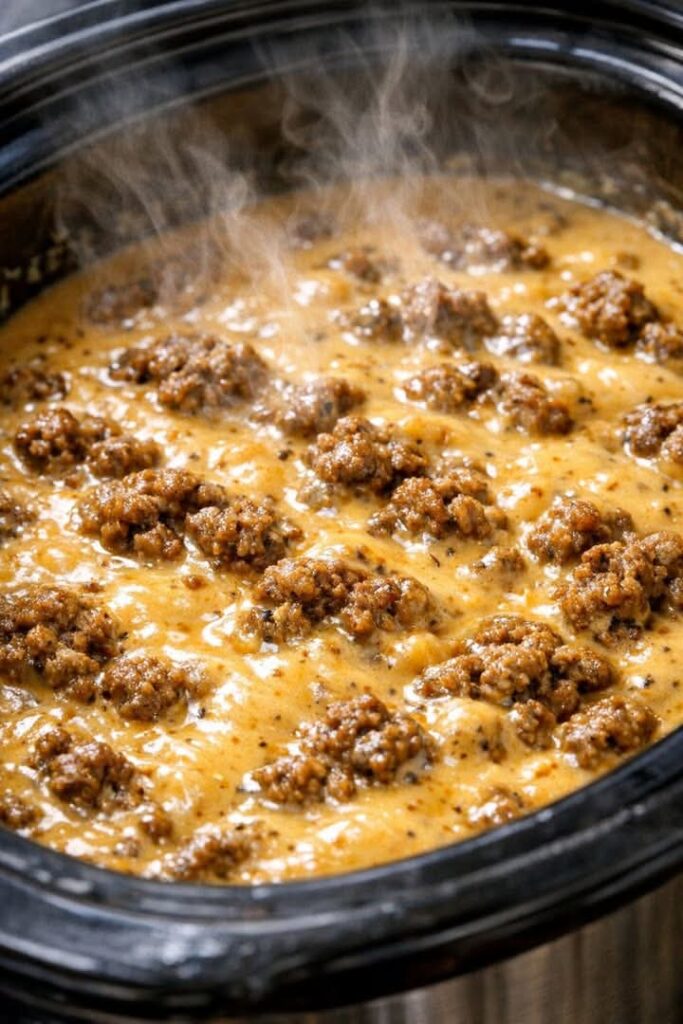 Slow Cooker Cheesy Ground Beef Queso Dip