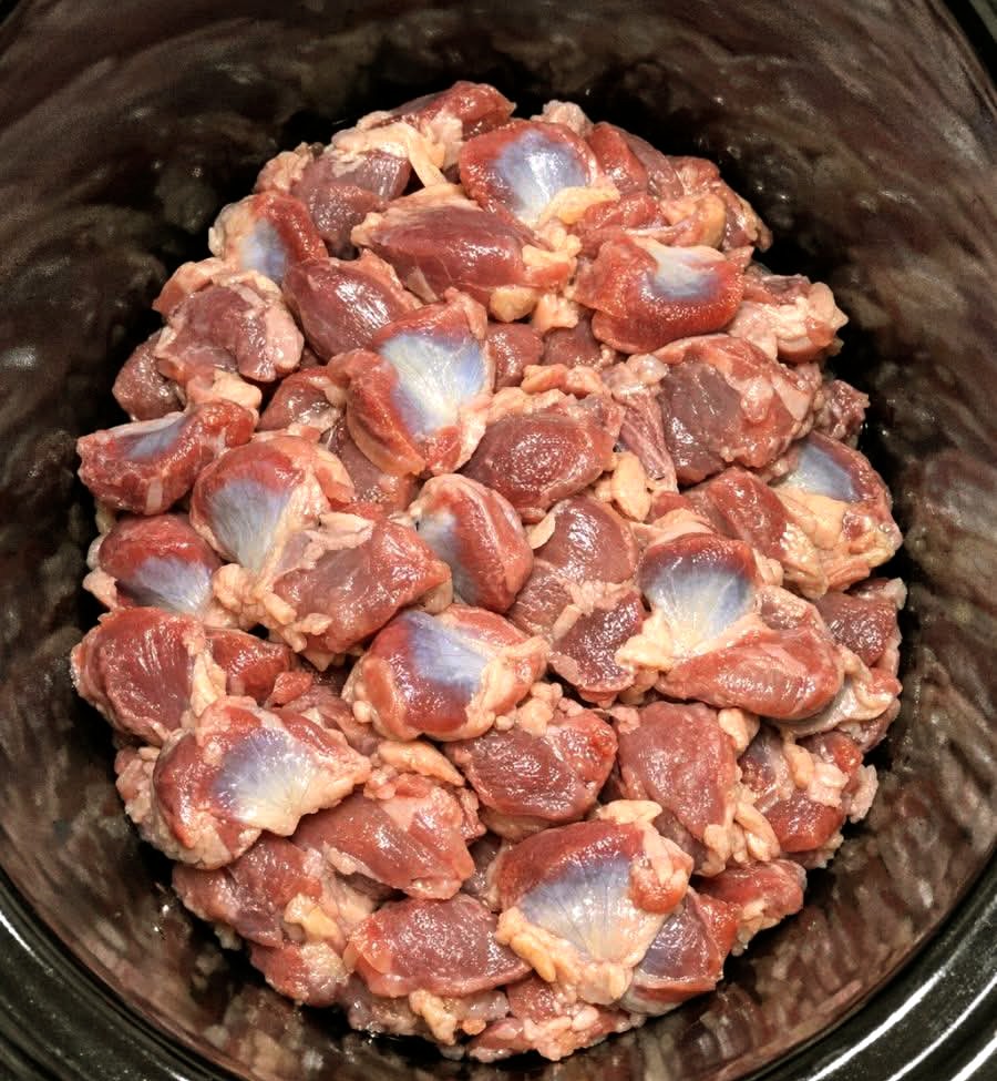 Pour sauce over gizzards, making sure they are well coated. - Slow cook