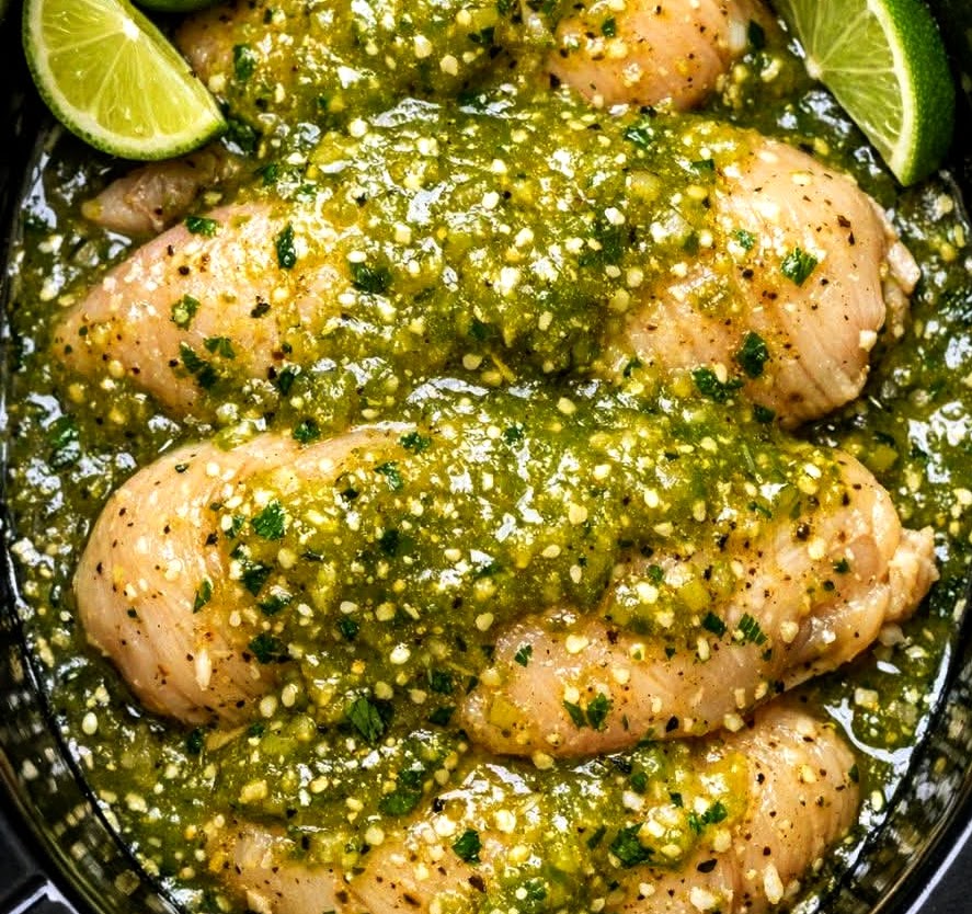 Inspired by classic Mexican and Tex-Mex salsa braised chicken, this dish lets the slow cooker do all the heavy lifting. The tangy tomatillo-based salsa gently tenderizes the chicken until it’s juicy, fork-shreddable, and packed with bold flavor. Start it in the morning, forget about it all day, and come back to a kitchen that feels completely handled.