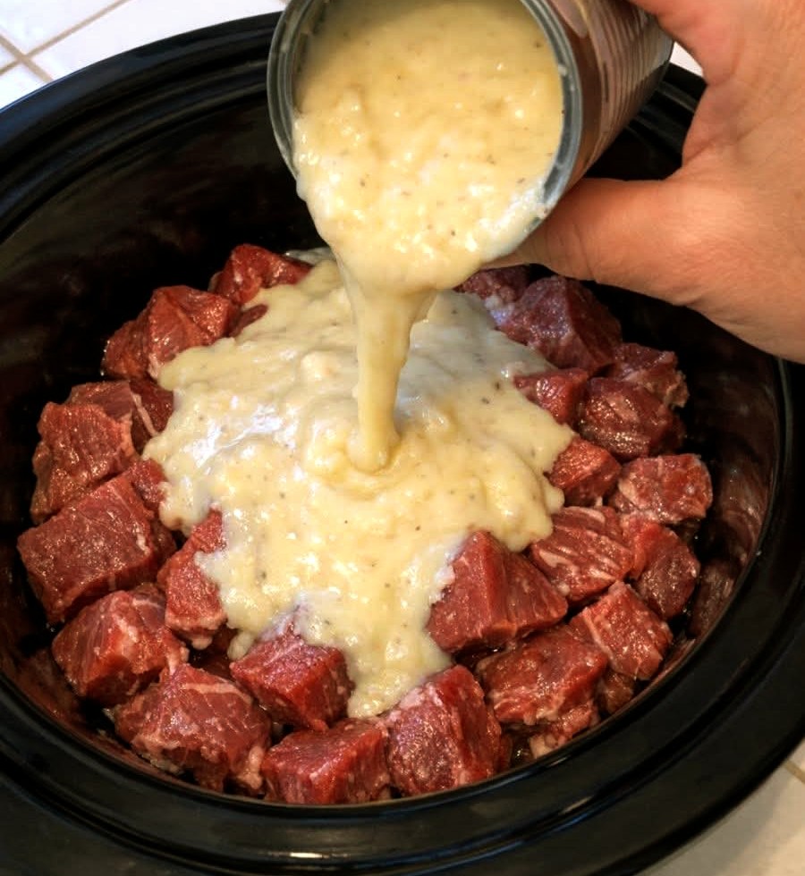 This Slow Cooker Creamy Beef and Noodles recipe is the perfect answer when you need an easy, hearty, and satisfying family dinner. Made with tender beef stew meat, rich cream of potato soup, savory onion soup mix, and soft egg noodles, this dish delivers classic comfort food flavor with minimal effort.