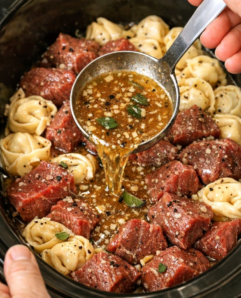 Transform your weeknight dinners with this slow cooker creamy brown butter Parmesan beef tortellini a hearty, indulgent meal that’s simple, hands-off, and packed with flavor. Tender beef tips and cheese-filled tortellini simmer in a rich, nutty brown butter Parmesan sauce with fresh sage and cracked black pepper, creating a comforting, restaurant-quality dish right at home.