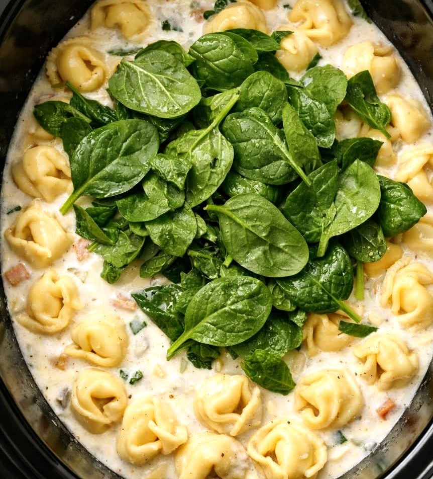 Add tortellini and spinach. Cover and cook on HIGH for 20–30 minutes, just until tortellini are tender.
