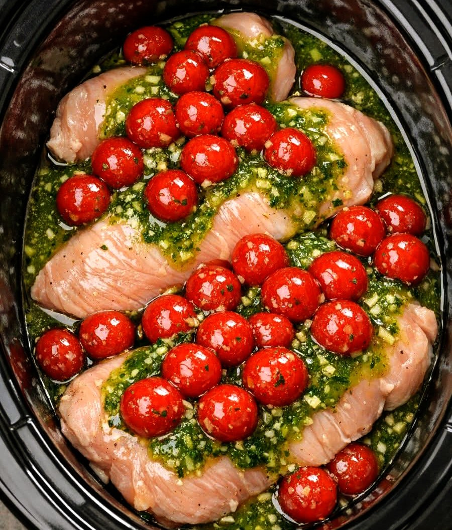 Looking for the perfect slow cooker fiesta chicken recipe that is easy, flavorful, and made with just a few simple ingredients? This 4-ingredient crock pot chicken recipe is a family favorite for busy weeknights, meal prep, and casual gatherings. Tender shredded chicken, zesty salsa verde, juicy tomatoes, and taco seasoning come together for a delicious Mexican-inspired slow cooker chicken everyone will love.