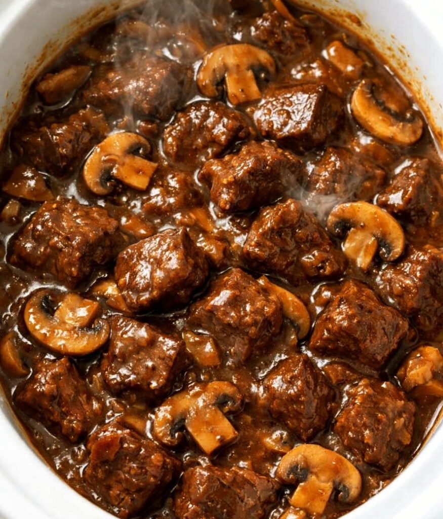 Slow Cooker Mushroom Beef Tips