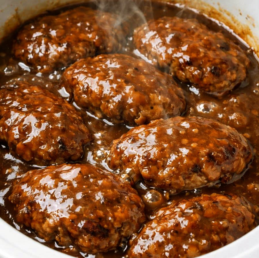 Cover and cook on LOW for 6–8 hours or HIGH for 3–4 hours, until patties are tender and gravy is glossy.