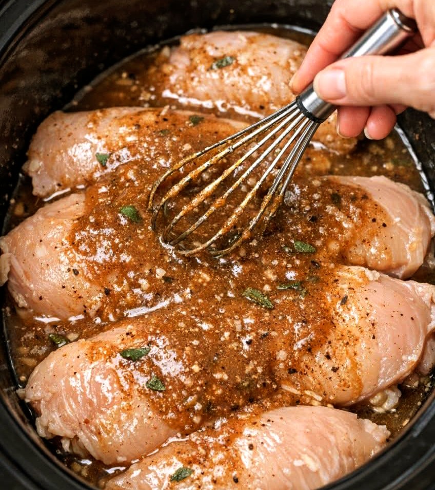This easy crockpot chicken recipe is ideal for busy weeknights, fall dinners, or whenever you want a comforting homemade meal without standing over the stove. Just whisk one simple mixture, pour it over the chicken, and let the slow cooker do the rest.