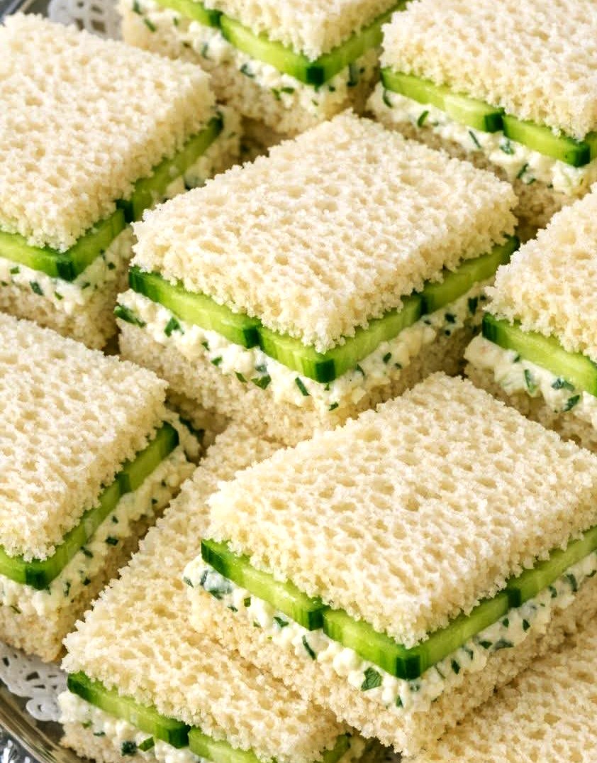 Keep the cucumber in a single layer so the sandwiches stay neat and easy to bite.