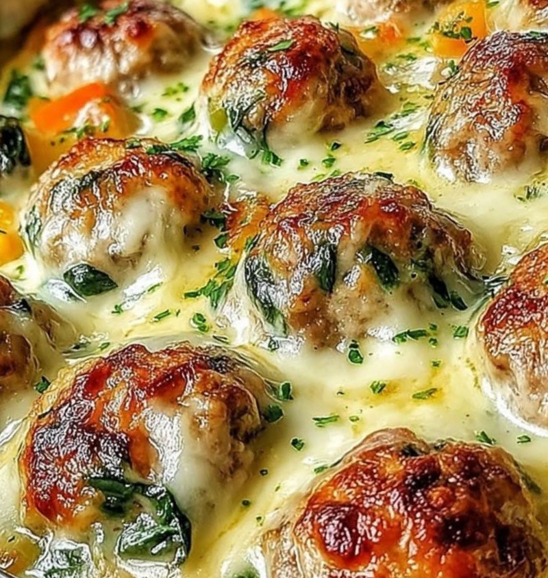 Southern-Style Baked Chicken Ricotta Meatballs with Creamy Spinach Alfredo Sauce