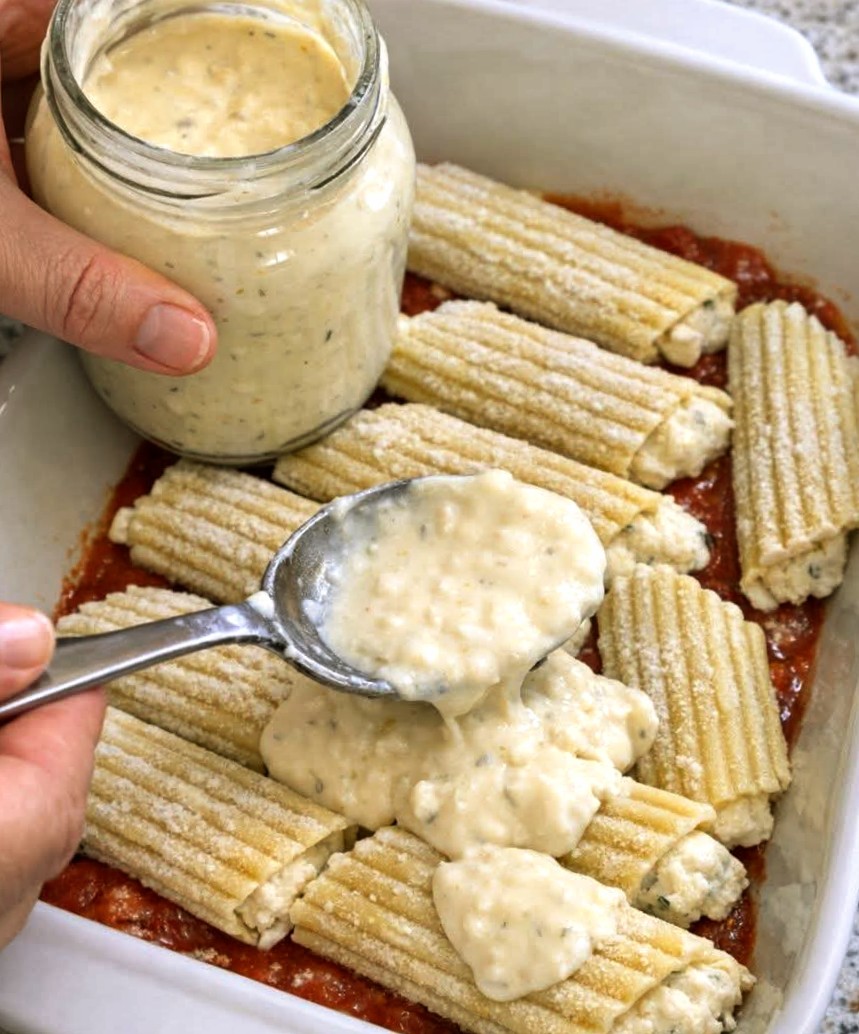 Tuscan Spinach Manicotti Bake with 4 Cheese Sauce